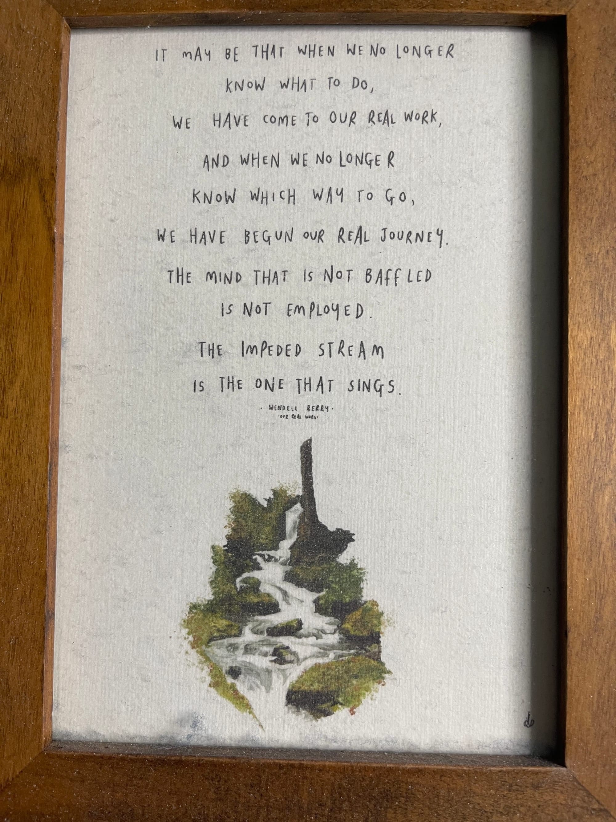 In the meantime, I would like to introduce you to Wendell Berry the poet, by sharing a photo of one of my retirement gifts, from a very special friend:
